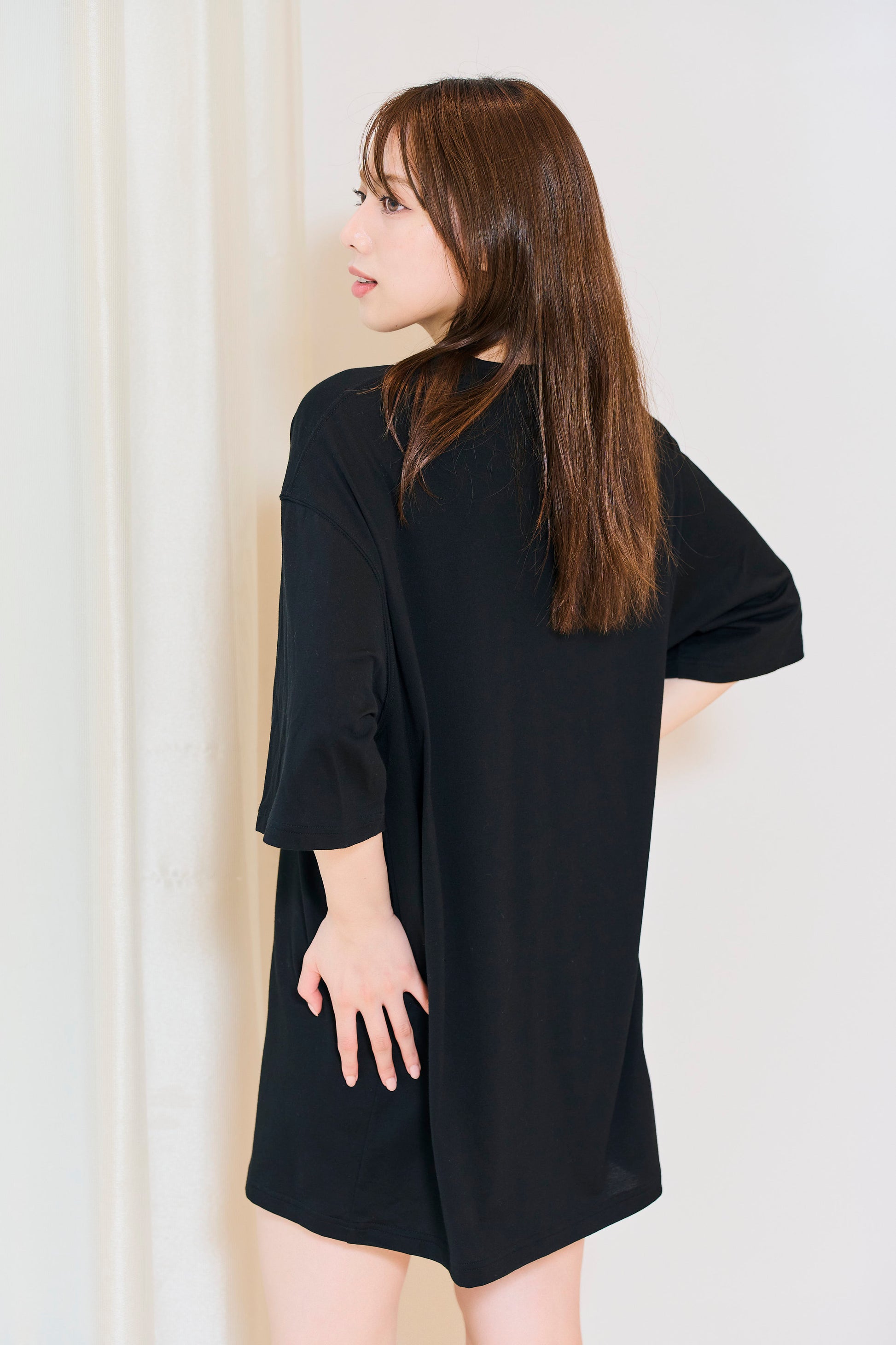 厳選された綿を使用したbigTシャツ。胸元についたロゴがさりげないアクセントとなります。膝上の丈感なので1枚でワンピースとしてもさらっと着こなせる万能アイテムです。