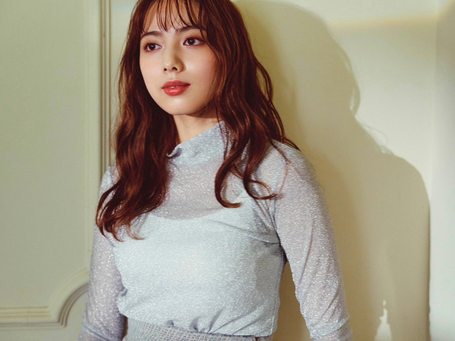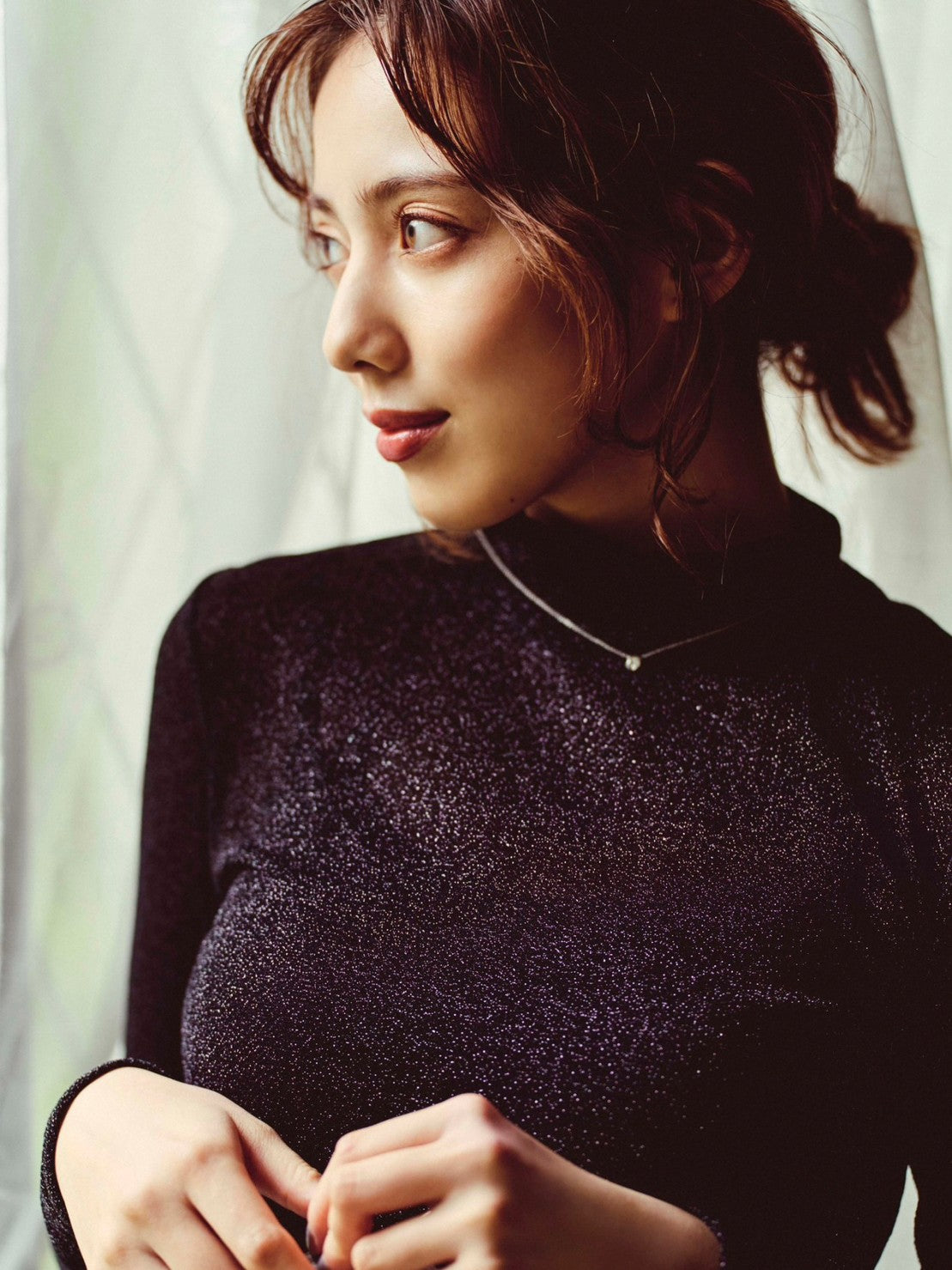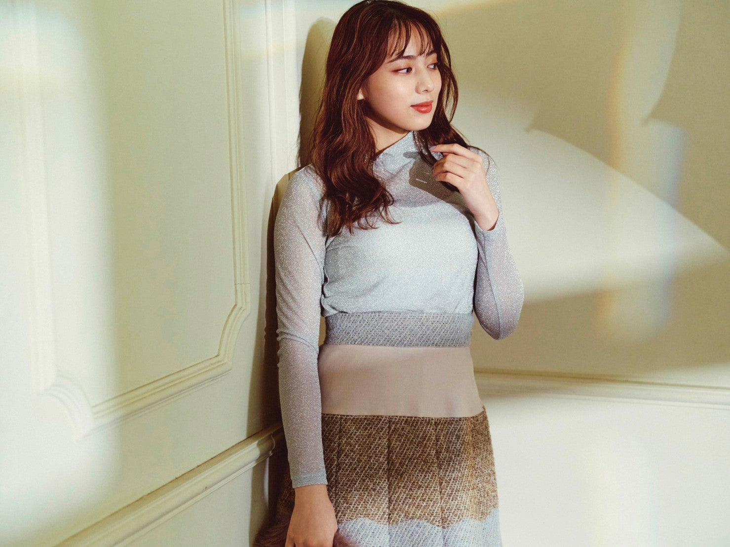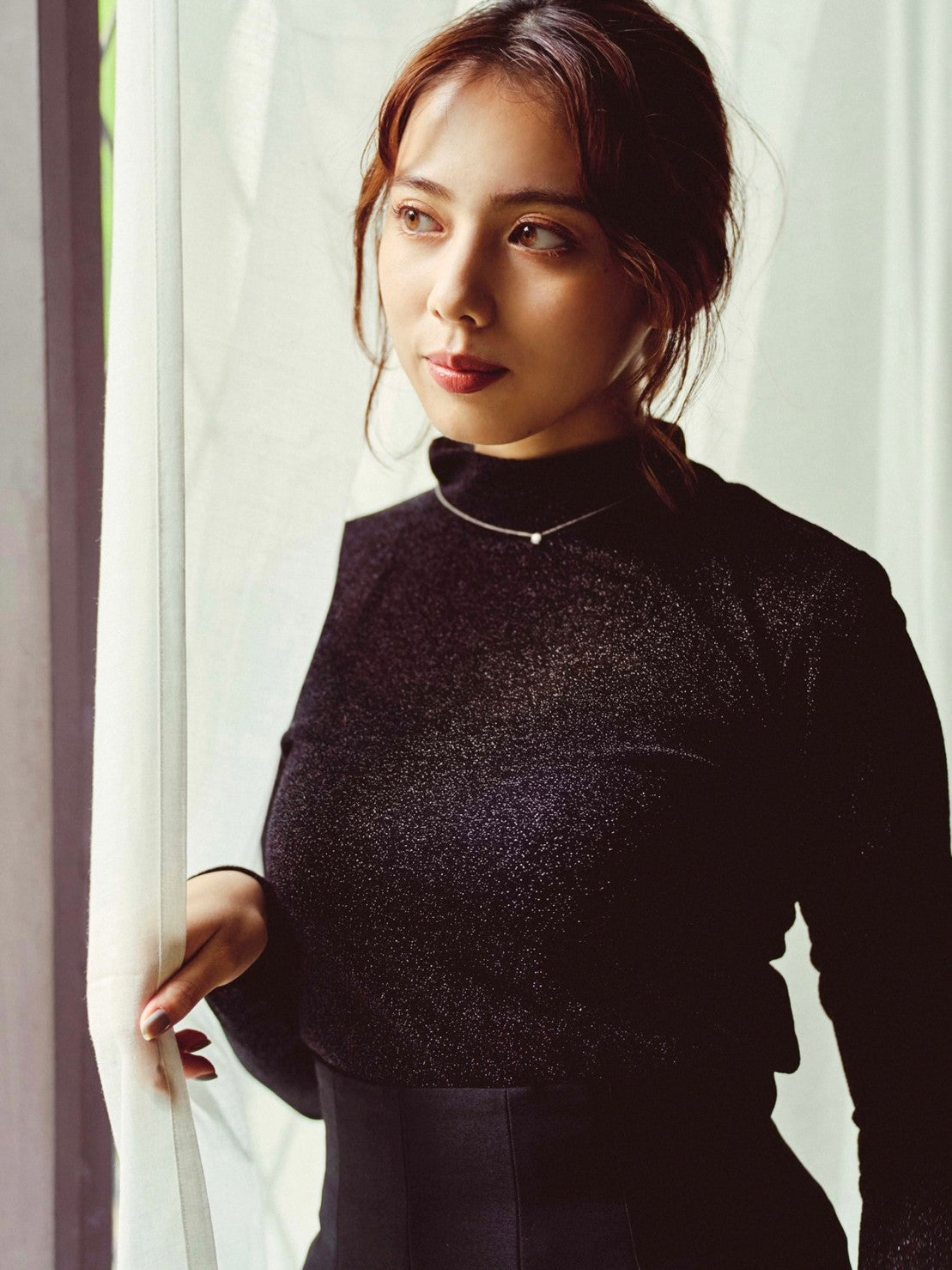 ラメ使いが華やかな、ハイネックのカットソー。やや透け感のある素材でトレンドも取り入れつつ、シンプルなデザインにこだわりました。程よくフィットするシルエットで、単品ではもちろん、ジャケットやカーディガンのインナーとしても活躍します。すっきりとしたスタンドカラーはレイヤードしやすく、コーディネートの幅が広がります。薄手の素材なのでロングシーズンお使いいただけるトップスです。